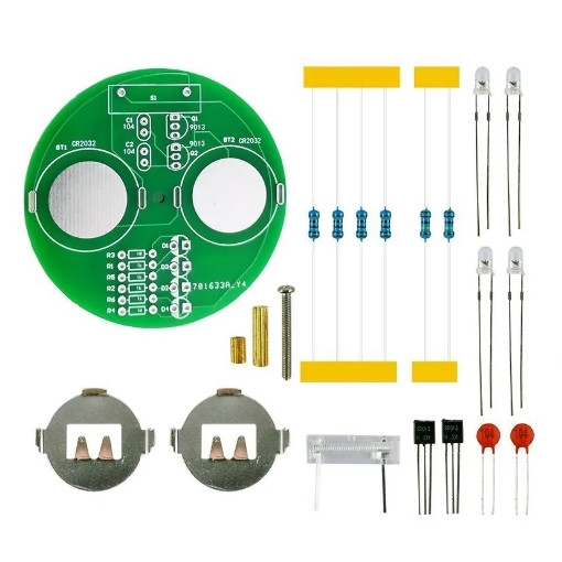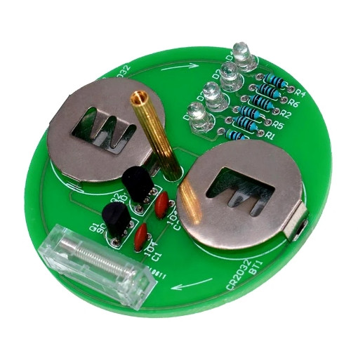 Набор для сборки светодиодного волчка. После запуска волчка, благодаря мультивибратору на нём начинают мерцать светодиоды, создавая POV-эффект. В состав набора входят: выводные резисторы, конденсаторы, транзисторы, держатели элементов питания, светодиоды, датчик ускорения.