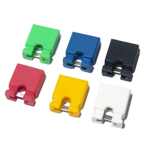 Джамперы – это миниатюрные съемные перемычки (скобы), которые устанавливаются на штыревые контакты печатной платы для замыкания или размыкания определенных участков цепи, чтобы настроить режимы работы, включить/отключить функции или выбрать конфигурацию устройства, например, на материнских платах или контроллерах. Они служат для простой перенастройки без пайки.