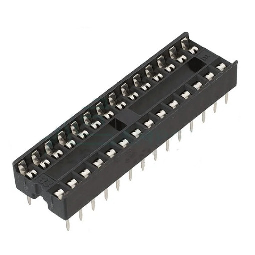 Используйте панель для быстрого монтажа DIP-микросхем на 28 контактов в своих устройствах. Ножки чипа удерживаются в штыревых контактах «мама» с шагом 2,54 мм.